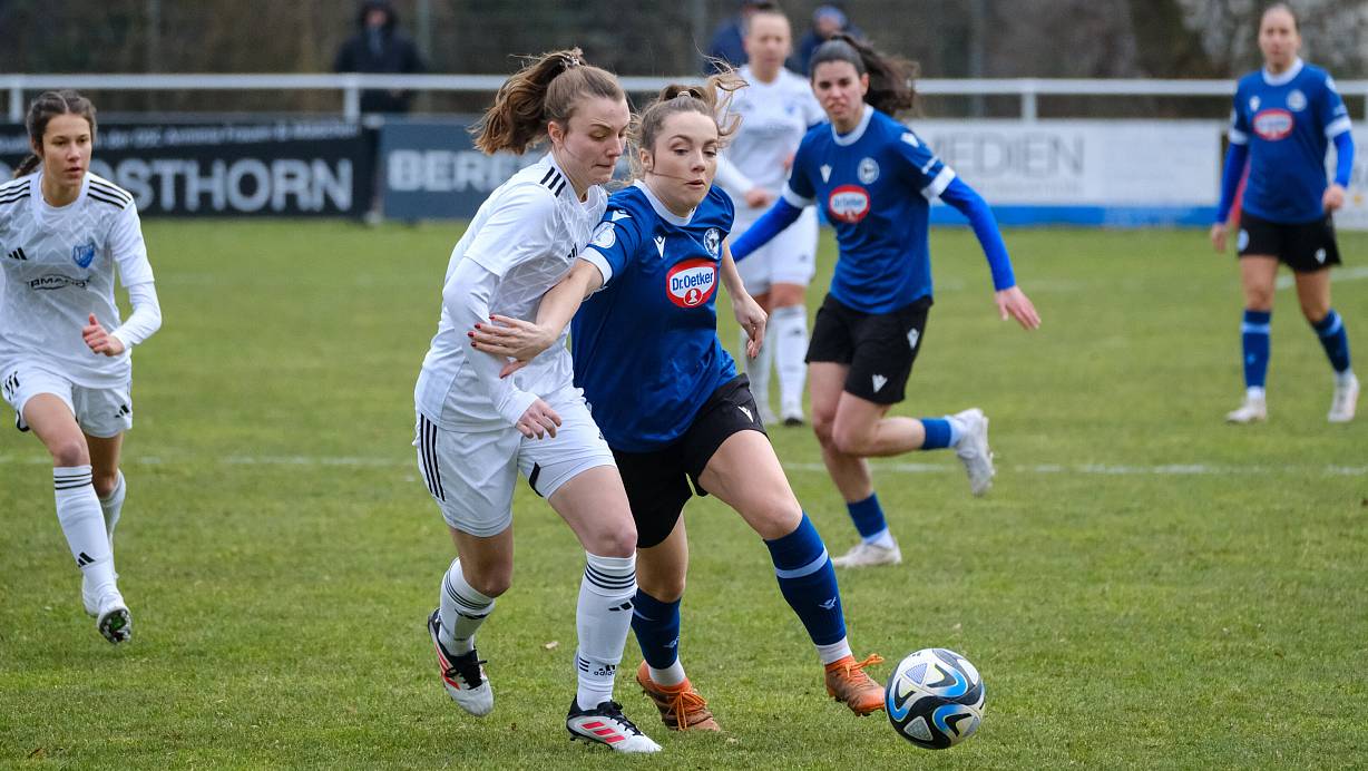 Arminias Sophia Thiemann im Kampf um den Ball. | © Andreas Zobe