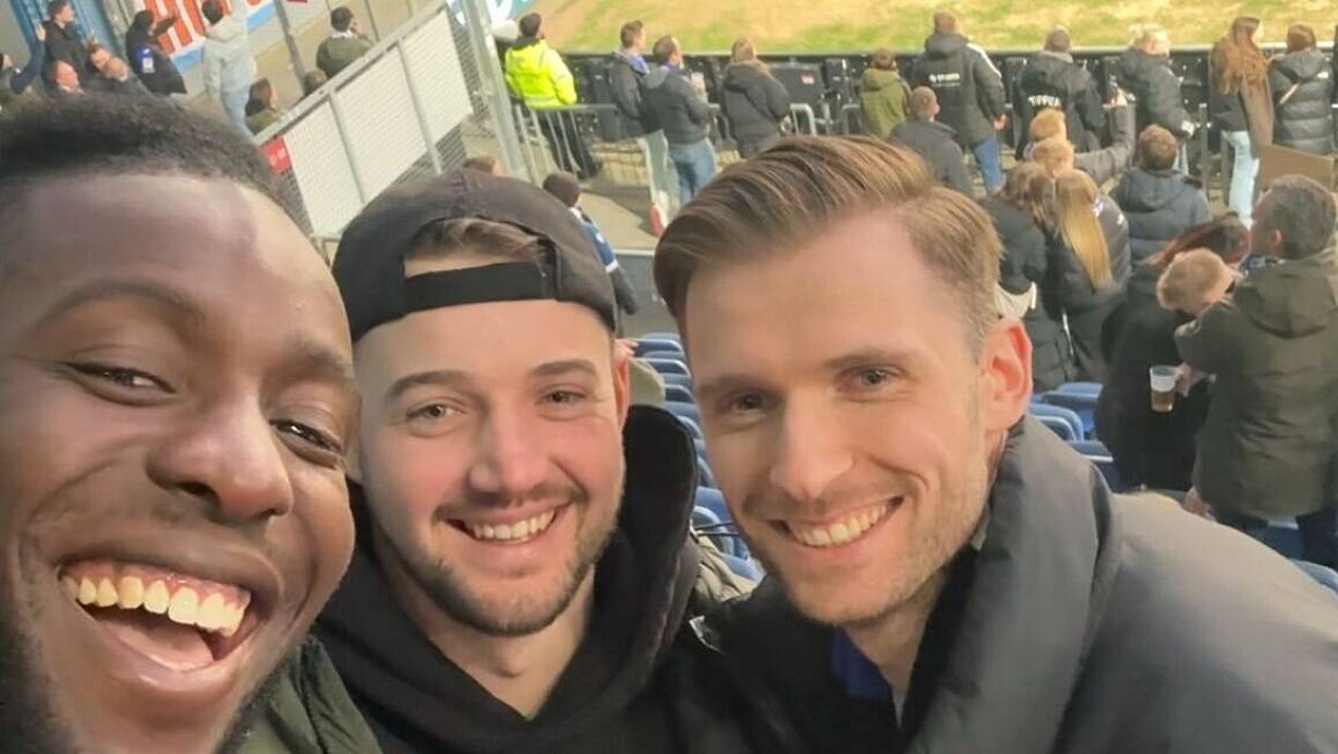 SCB-Kicker Andrew Agyeman (von links) erlebte mit Julian Stühmeier und Boris Glaveski vom TuS Dornberg seine Premiere auf der Alm. | © Privat
