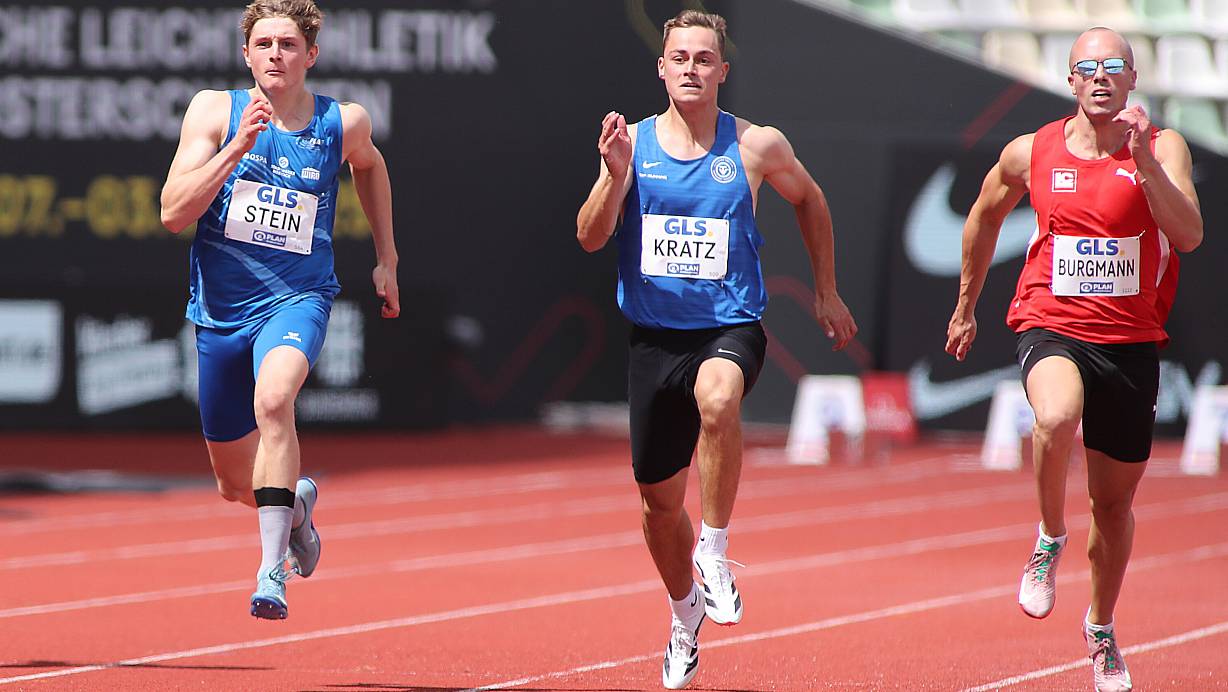 Der Bielefelder Jonas Burgmann (r.) lief die 100 Meter in starken 11,39 Sekunden.