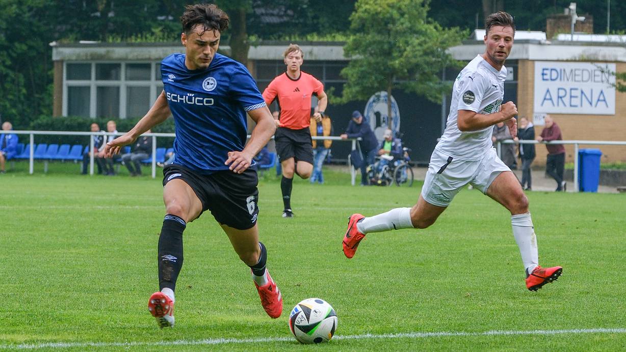 Arminias Mittelfeldspieler Suat Fajic (l.), hier gegen Schonnebeck, hat schon Oberligaerfahrung in Münster gesammelt. | © Andreas Zobe