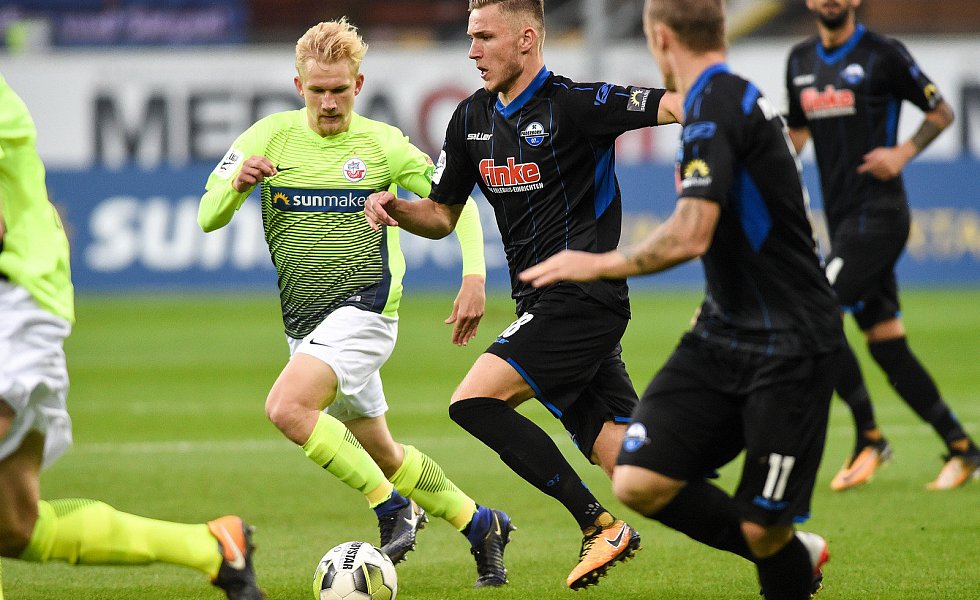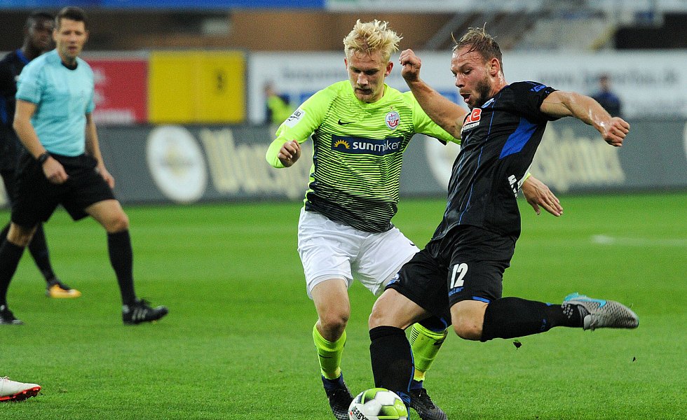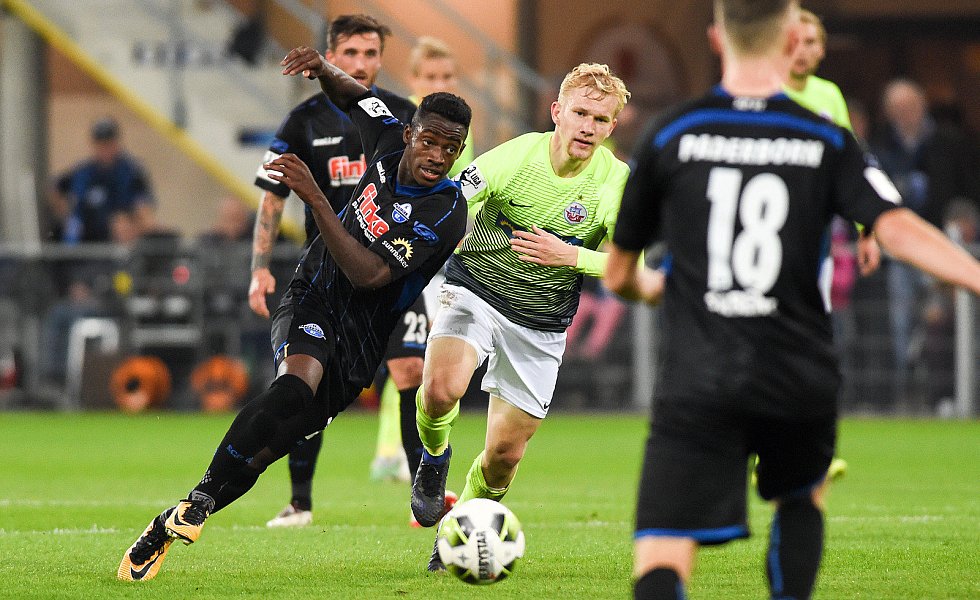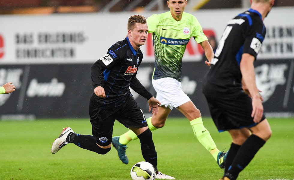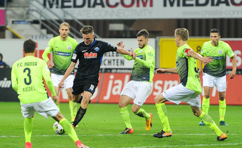 Und gerade einmal 60 Sekunden nach dem Paderborner Führungstreffer hatten die Gäste von der Ostsee auch die Großchance zum Ausgleich. Eine völlig missglückte Kopfballrückgabe des SCP-Linksverteidigers Herzenbruch landete bei Hansa-Akteur Hilßner, der das Spielgerät jedoch freistehend über das Tor drosch (39.).