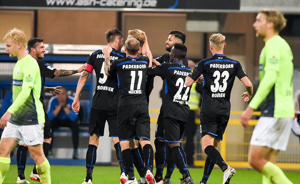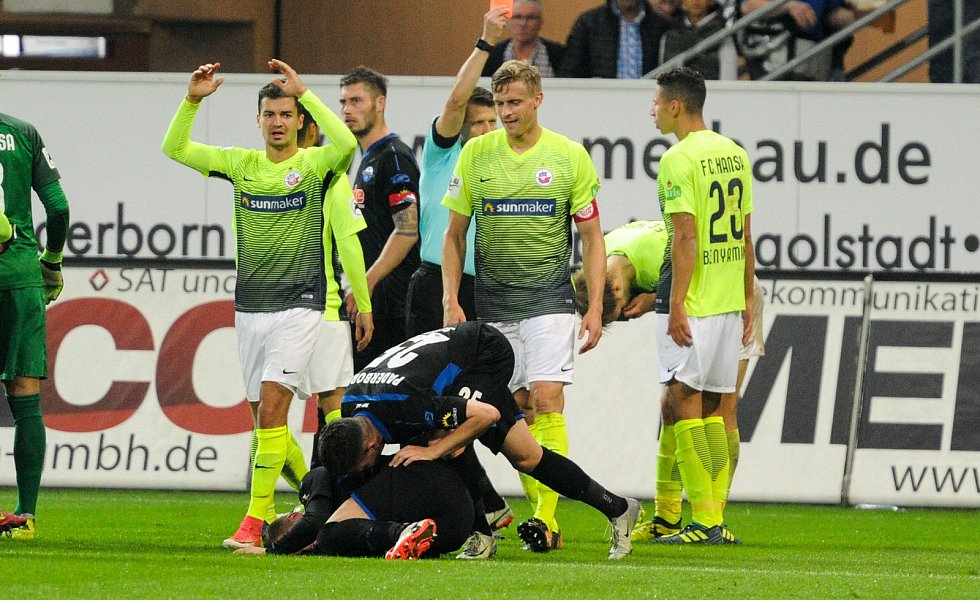 Unmittelbar danach sah Hansa-Kicker Henning Gelb-Rot. Und sein Trainer Pavel Dotchev musste bei seiner Rückkehr nach Paderborn wegen Reklamierens auf die Tribüne. Und es kam noch dicker für die Gäste: Srbeny zirkelte den Ball aus 16 Metern zum 2:1 ins rechte Eck. Bertels sah noch Rot, doch dann war der Sieg perfekt.