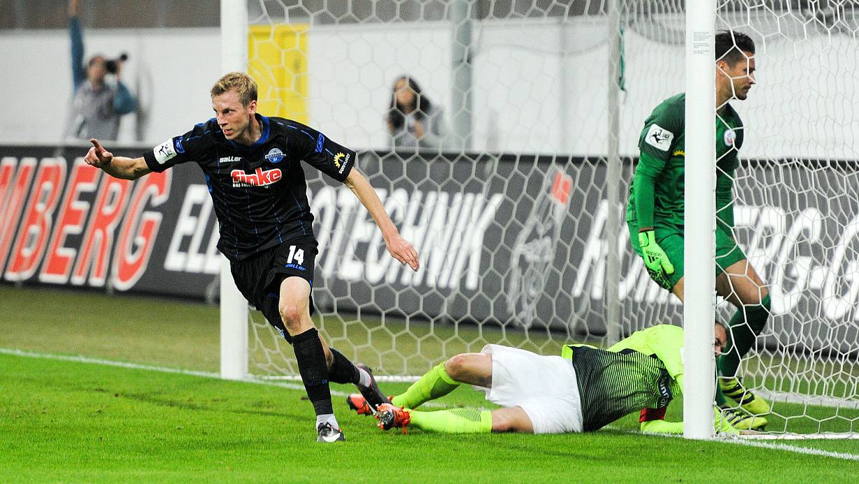 Und ausgerechnet eben jener Thomas Bertels sollte in der 38. Minute für den Paderborner 1:0-Treffer sorgen. Nach einer Wassey-Ecke köpfte SCP-Stürmer Srbeny den Ball Richtung langer Pfosten. Dort stand Bertels goldrichtig, um das Leder aus kurzer Distanz über die Linie zu stochern.