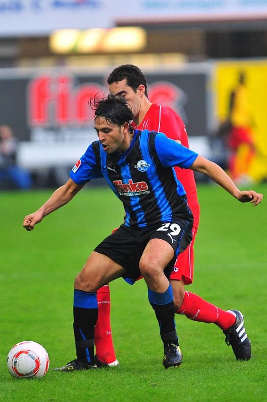 Mit Gaetano Mann, Mahir Saglik, Torhüter Daniel Masuch, Sebastian Schachten und Philipp Heithölter standen gleich fünf Neuzugänge in der Startelf. Die mitgereisten SCP-Anhänger trauten ihren Augen nicht, als furios startende Berliner schon nach 24 Minuten mit 3:0 führten. Paderborn schüttelte sich und kam durch Tore von Manno und Saglik noch vor der Pause auf 3:2 heran.