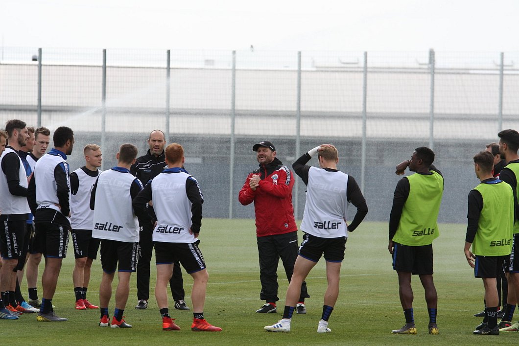 SCP-Trainer Steffen Baumgart hatte alle Spieler an Bord, auch Sven Michel, der sich bei der Niederlage in Bielefeld einen tiefen Cut auf der Wange zuzog. Er machte alle Übungen mit, setzte nur beim Spiel aus. Mit viel Einsatz dabei war auch Christian Strohdiek. Der gebürtige Paderborner und Uwe Hünemeier sind die einzigen aus dem aktuellem Kader, die schon beim Bundesligaaufstieg 2014 dabei waren.