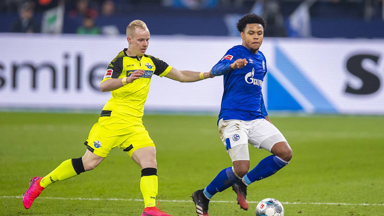 Winterneuzugang Dennis Jastrzembski (l.), hier im Duell gegen Weston McKennie, feierte im Gastspiel auf Schalke sein Debüt für den SCP. | © picture alliance