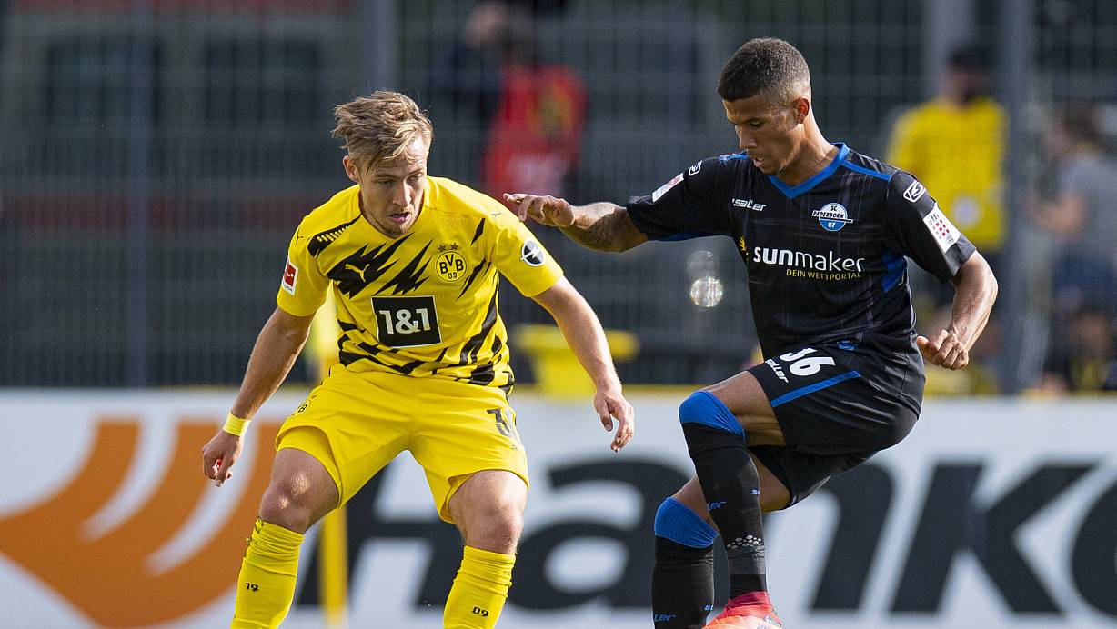 SCP-Neuzugang Chima Okoroji (r.), hier gegen BVB-Akteur Felix Passlack, überzeugte nicht nur im Test gegen Dortmund. | © picture alliance