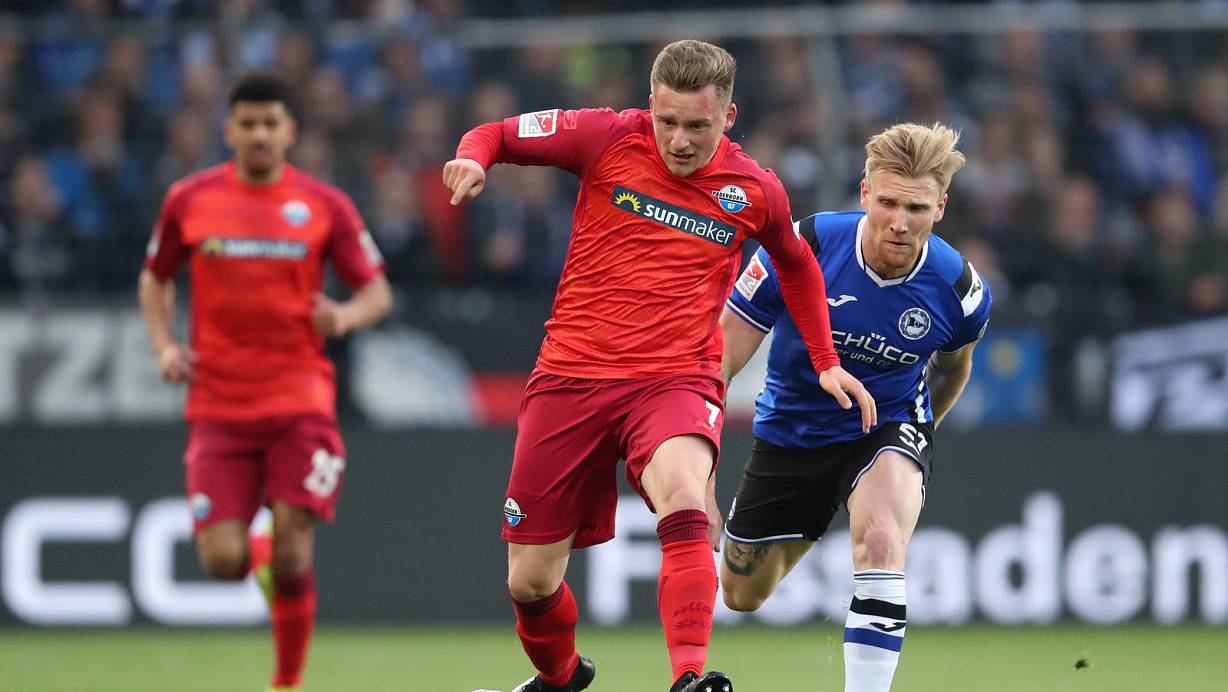 Marlon Ritter, der hier in der Zweitliga-Saison 2018/19 gegen Arminia Bielefeld am Ball ist, steht vor einem Wechsel zum Drittligisten 1. FC Kaiserslautern. | © picture alliance