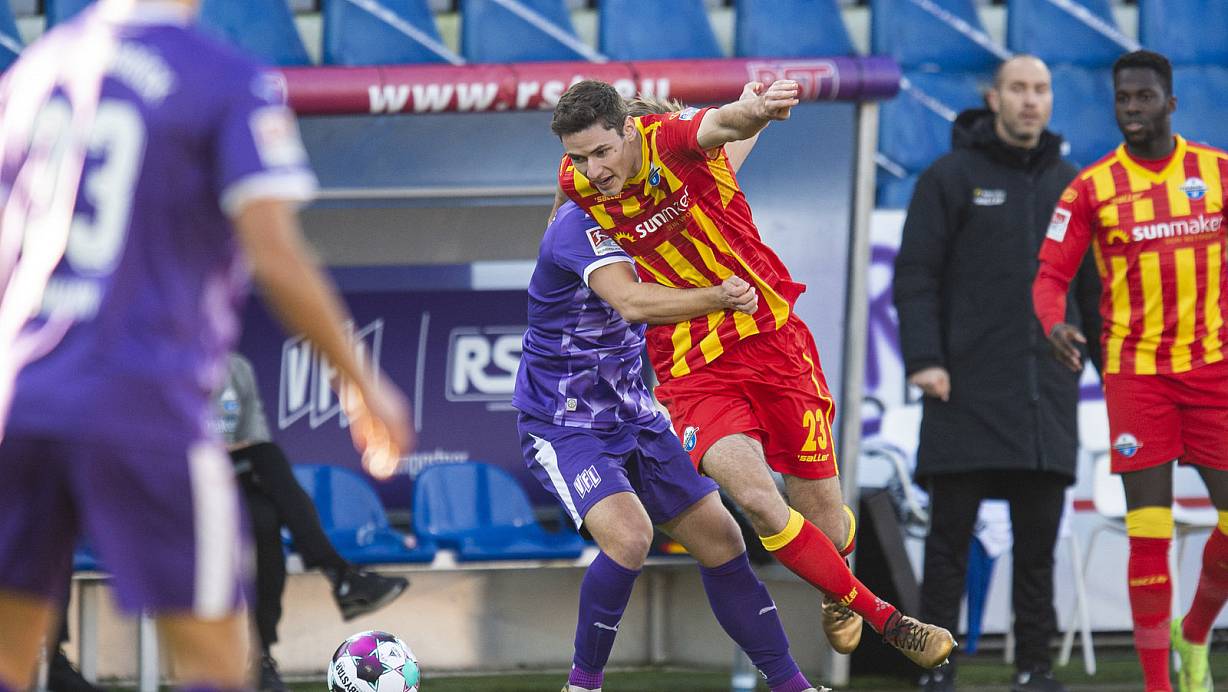 SCP-Akteur Maximilian Thalhammer , der sich in dieser Szene gegen den Osnabrücker David Blacha durchsetzt, feierte drei Monate nach seinem Mittelfußbruch ein gelungenes Comeback. | © Noah Wedel