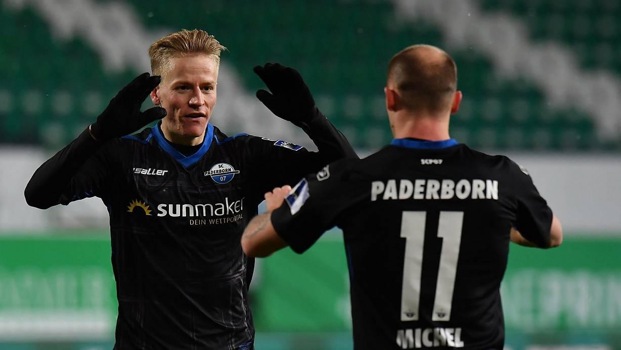 Neuzugang Chris Führich (l.) war unterm Strich der beste Paderborner Offensiv-Akteur der Hinrunde. Hier jubelt er mit Vorlagengeber Sven Michel über seinen 1:1-Treffer in Fürth. | © picture alliance