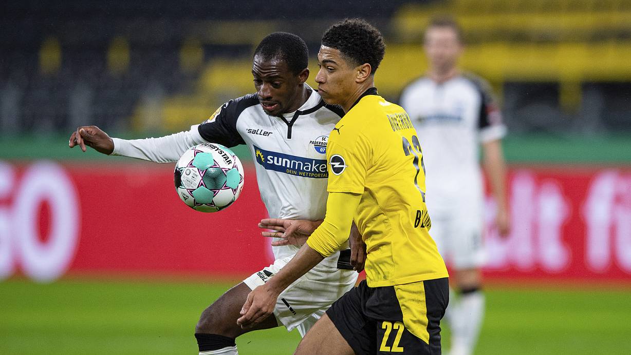 SCP-Flügelstürmer Christopher Antwi-Adjei (l.), hier im Duell gegen BVB-Akteur Jude Bellingham, bot am Dienstag seine wohl beste Saisonleistung. | © picture alliance