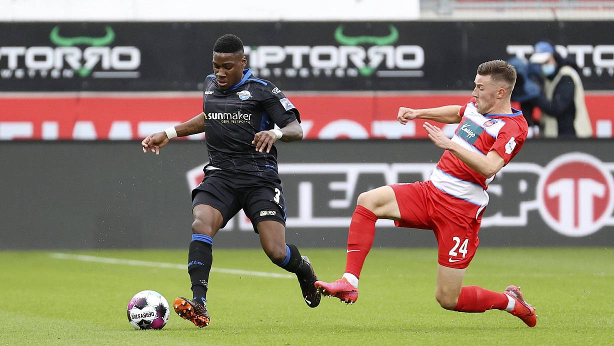 SCP-Rechtsverteidiger Frederic Ananou (l.) im Duell gegen Heidenheims Torjäger Christian Kühlwetter, mit dem er einst gemeinsam in der Jugend des 1. FC Köln gekickt hatte. | © picture alliance