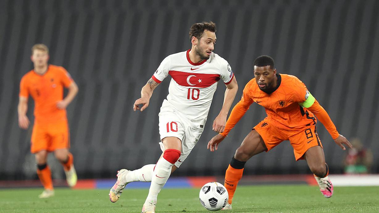 Das türkische Nationalteam um Ex-Bundesligaprofi Hakan Calhanoglu (vorne) feierte im März in der WM-Qualifikation einen 4:2-Sieg gegen die Niederlande. Kurz vor der EM-Endrunde machen Calhanoglu und Co. nun in Paderborn Station. | © picture alliance