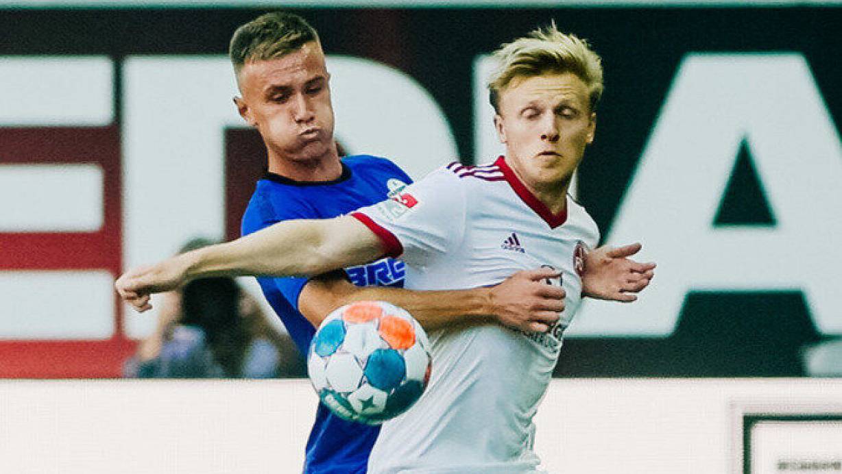 Nürnbergs Mats Möller Daehli (r.), hier im Duell gegen SCP-Innenverteidiger Jasper van der Werff, narrte die Paderborner Defensive ein ums andere Mal und bereitete beide Treffer der Gäste vor. | © Besim Mazhiqi