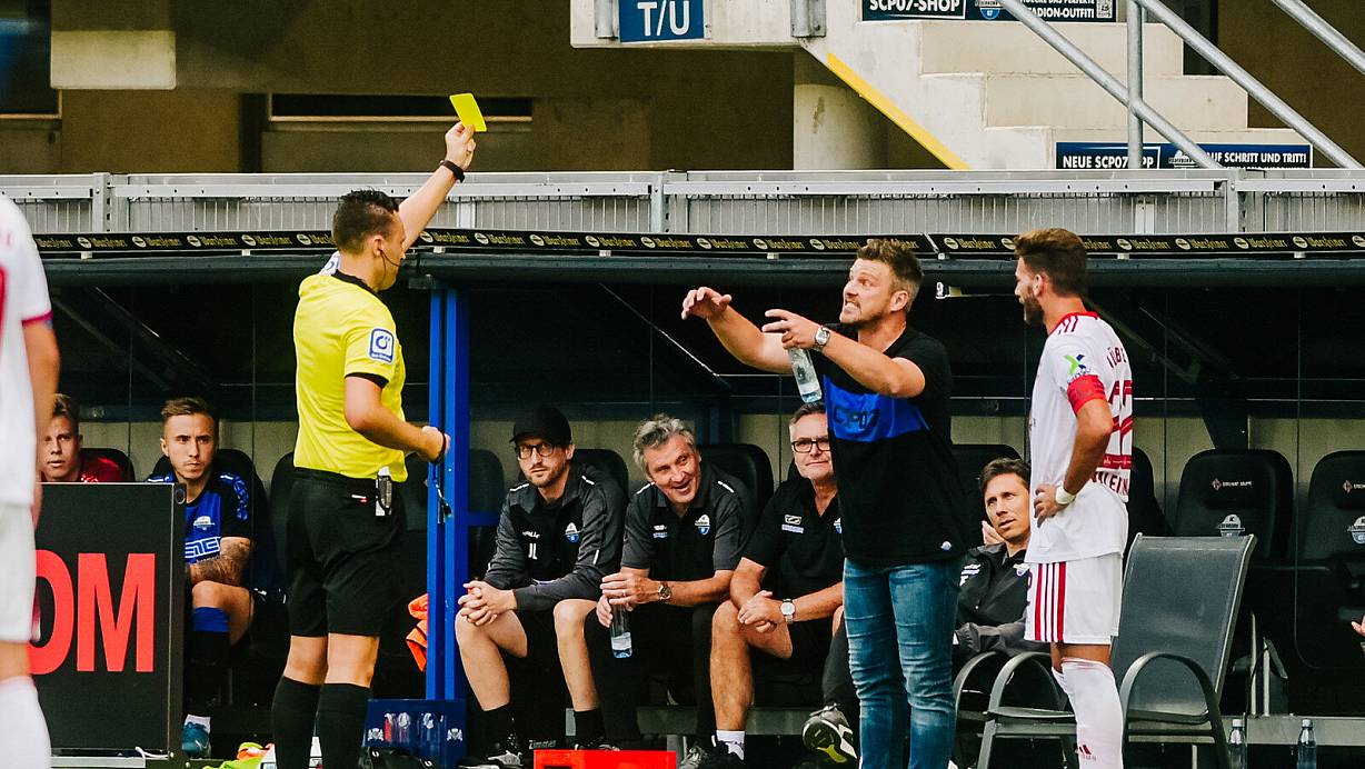 Seit der Saison 2019/20 können Schiedsrichter in den drei höchsten deutschen Fußball-Ligen auch Trainern und allen anderen auf der Bank sitzenden Funktionsträgern Gelbe, Gelb-Rote und Rote Karten zeigen. Obwohl Lukas Kwasniok ein ziemlich emotionaler Coach ist, hatte er in der vergangenen Spielzeit als Cheftrainer des Drittligisten 1. FC Saarbrücken jedoch keine Karte gesehen. "Ich bin lautstark, aber ich bin nicht als respektloser Rüpel bekannt", betonte der neue SCP-Trainer am Freitagabend nach dem Heimspiel gegen den 1. FC Nürnberg. Zuvor hatte er nämlich eine unliebsame Premiere erlebt. In der 43. Minute war Schiedsrichter Sven Jablonski zur Seitenlinie geeilt, um eine Gelbe Karte gegen Kwasniok zu zücken.