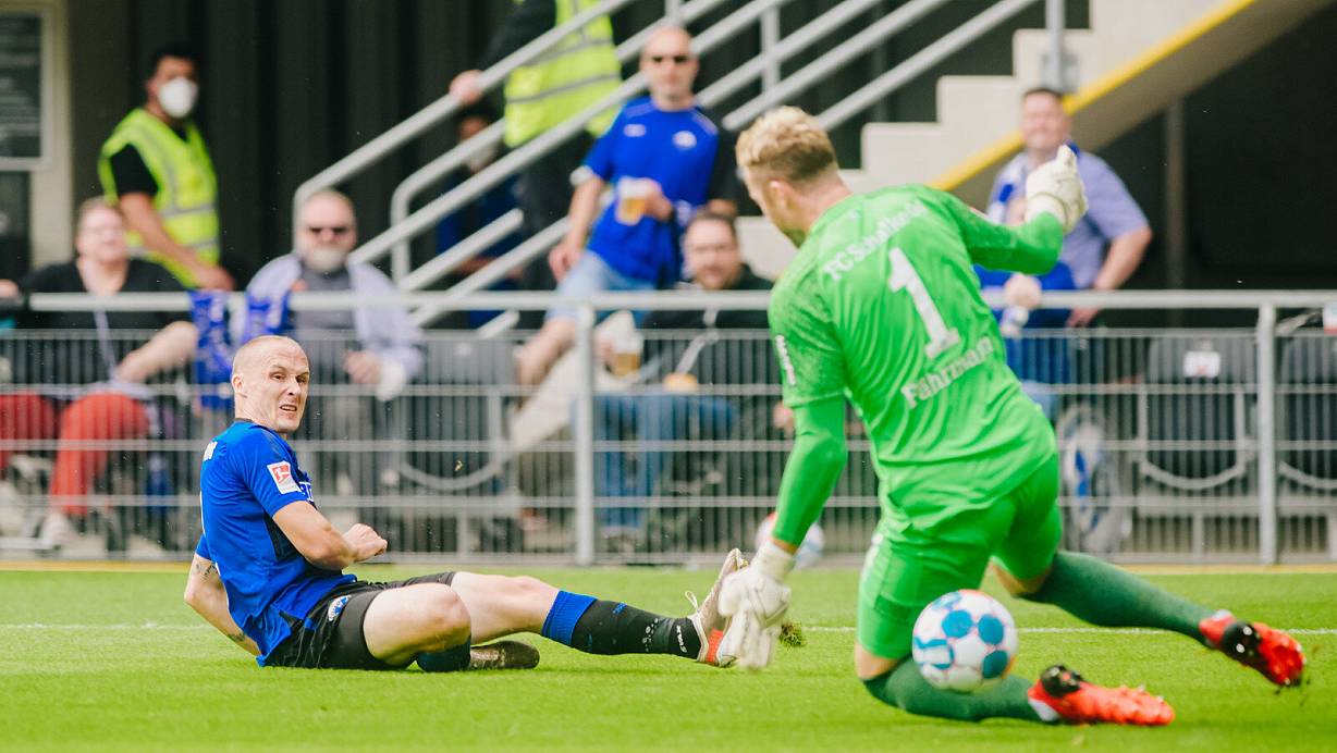 Sven Michel erzielte hier fast das 1:0. Sein Schuss ging an Keeper Fährmann vorbei, aber auch um Zentimeter am Tor. | © Besim Mazhiqi