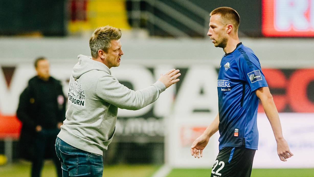 SCP-Coach Lukas Kwasniok muss in den kommenden Wochen auf seinen Mittelfeld-Routinier Marco Stiepermann (r.) verzichten. | © Besim Mazhiqi