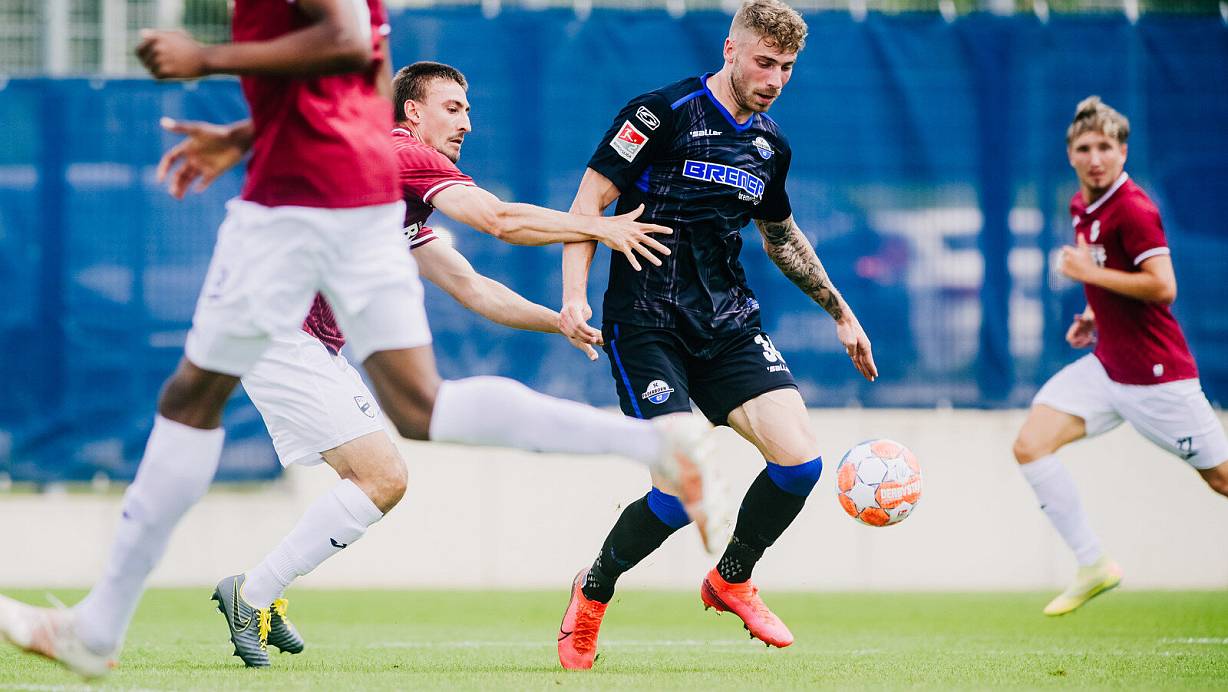 Ende Juni feierte der SCP um Stürmer Felix Platte einen 5:1-Testspielsieg gegen Verl. Am Samstag steigt eine Neuauflage dieses OWL-Duells. | © Besim Mazhiqi