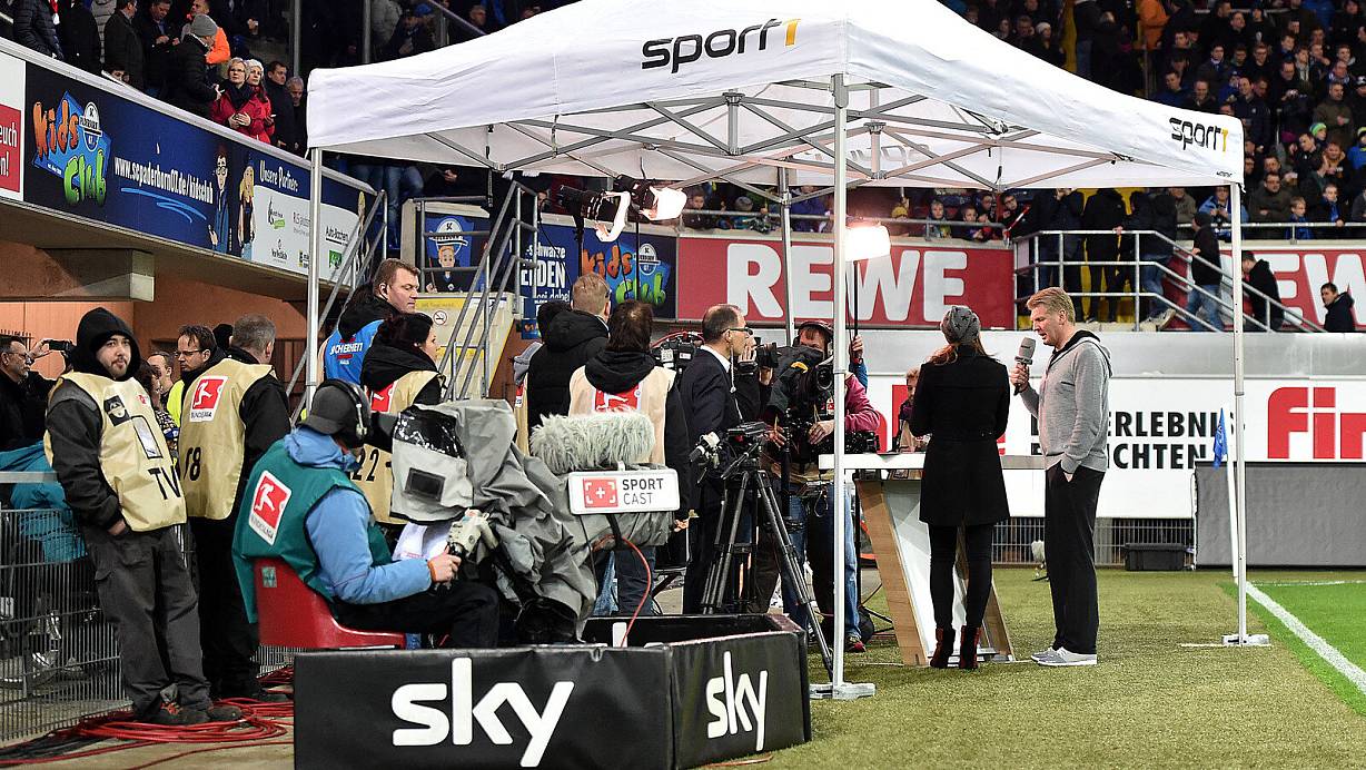 SCP-Spiele, die im Free-TV übertragen werden, haben absoluten Seltenheitswert. Am 21. Dezember 2015 machte Sport1 in der Benteler-Arena Station, um das Montagabendspiel gegen Fortuna Düsseldorf (0:0) zu übertragen und Interviews mit SCP-Coach Stefan Effenberg (r.) zu führen. | © picture alliance / dpa