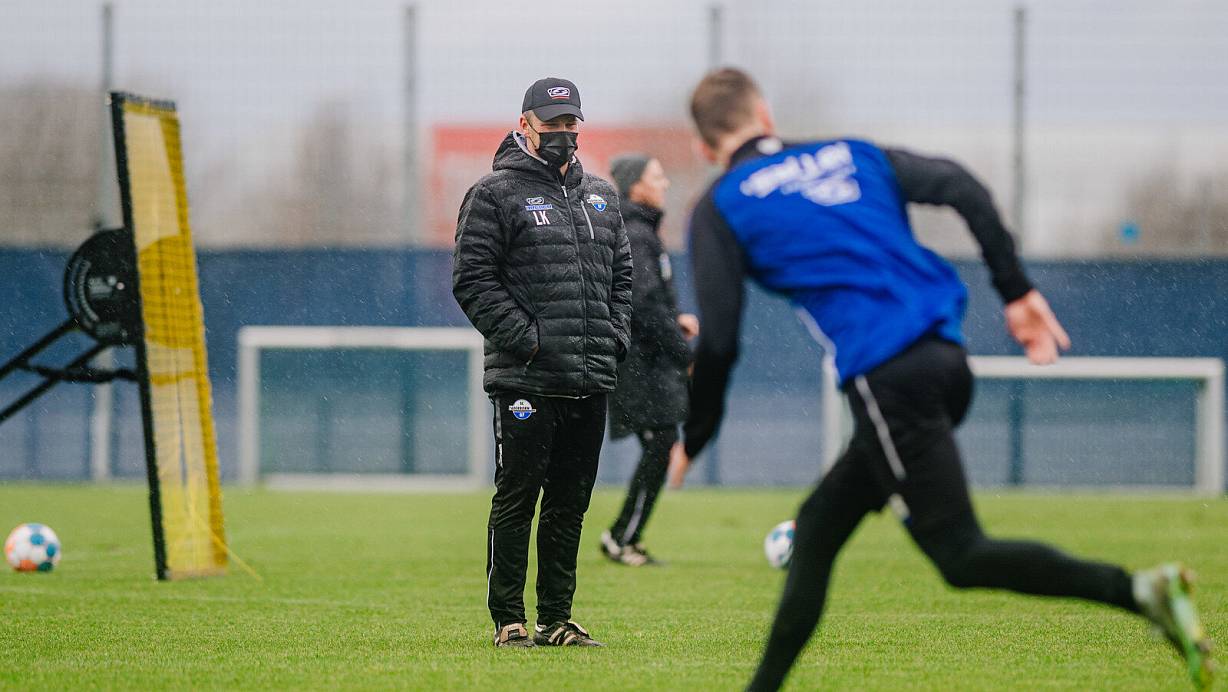 Ausgesprochen stürmisch ging es am Donnerstag beim Training des SC Paderborn zu. "Wir waren als Trainerteam mehr damit beschäftigt, die Bälle wieder einzufangen als auf inhaltliche Dinge einzugehen", berichtet SCP-Coach Lukas Kwasniok über die Unannehmlichkeiten, für die Sturmtief Ylenia sorgte.
