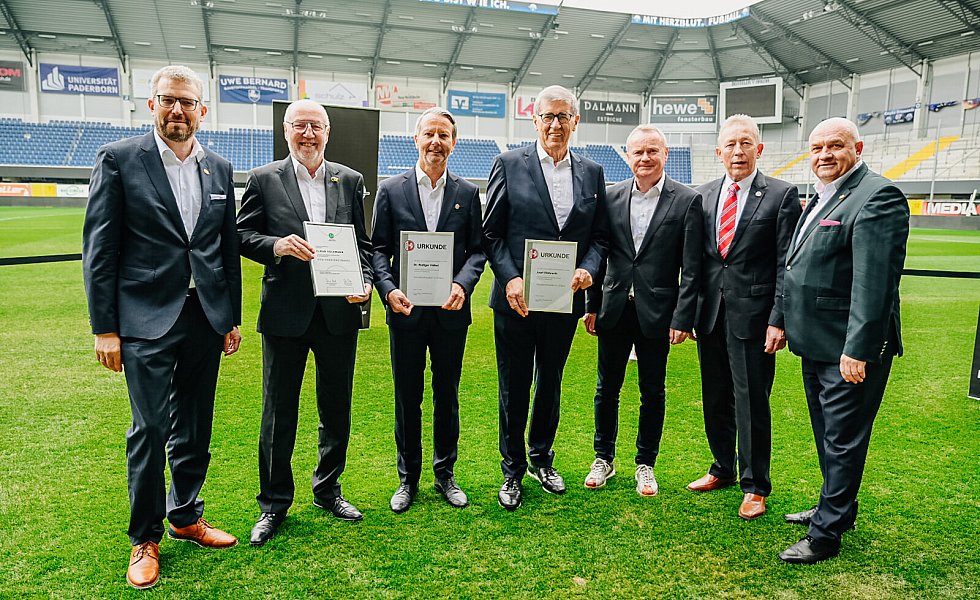 Doch die, die da waren, zollten ihm lang anhaltenden Applaus. Zudem gab es für den 75-Jährigen lobende Worte von Laudator Carsten Linnemann. Der Vizepräsident des SCP nannte Volkmann ein Urgestein des SCP, dass schon mit neun Jahren in den SCP-Vorgängerverein VfJ Paderborn eintrat und bis heute zur SCP-Familie gehöre.