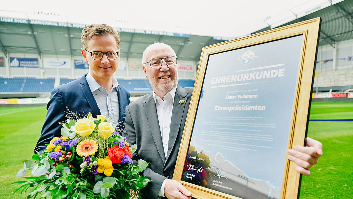 „Ohne Wilfried Finke wäre der SCP jetzt nicht da, wo er ist“, sagte Linnemann, „aber ohne Elmar Volkmann wäre alles nicht so erfolgreich gelaufen. Du warst das notwendige Korrektiv“, fügte er hinzu. Das bestätigte der neue Ehrenpräsident des SCP.