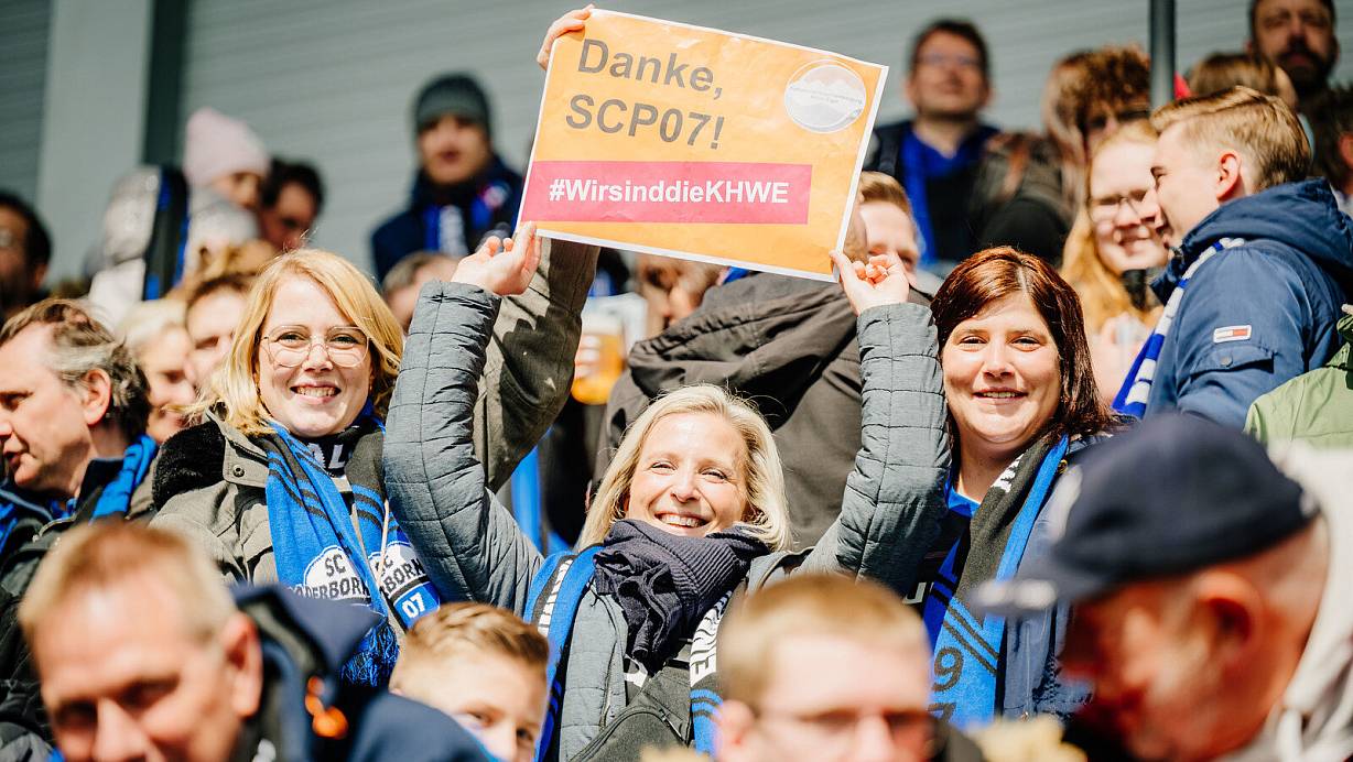 Auch diese drei Damen, die offensichtlich für die Katholische Hospitalvereinigung Weser-Egge aus dem benachbarten Kreis Höxter arbeiten, hatten beim SCP-Heimspiel gegen Karlsruhe sichtlich Spaß. | © Besim Mazhiqi