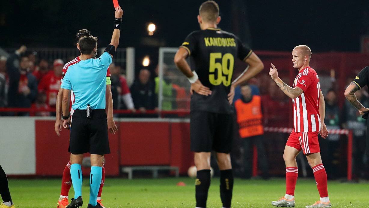 Doch am Ende musste sich der Ex-Paderborner nicht nur über eine letztlich verdiente 0:1-Heimpleite seines Teams ärgern. Der Union-Angreifer hatte zu allem Überfluss in der Nachspielzeit die Rote Karte gesehen. Michel war dem Belgier Teddy Teuma mit offener Sohle aufs Sprunggelenk gestiegen. Schiedsrichter Serhiy Boiko ließ das Spiel zunächst weiterlaufen, wurde dann aber vom Video Assistant Referee an den TV-Monitor gebeten. Boiko schaute sich die Szene noch einmal an und zückte zurecht Rot. Michel ist nun vermutlich zumindest in den nächsten beiden Europa-League-Spielen in Braga und Malmö zum Zuschauen verdammt.