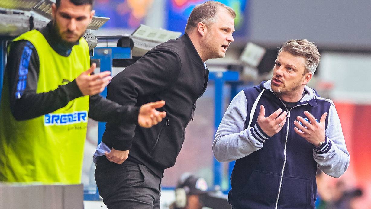 SCP-Trainer Lukas Kwasniok (r.) muss künftig nicht nur an der Seitenlinie auf das Fachwissen von Fabian Wohlgemuth verzichten. | © Besim Mazhiqi