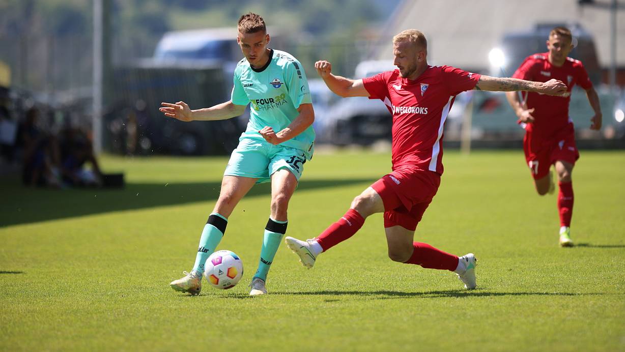 Filip Bilbija (l.) feiert im Testspiel gegen Gornik Zabrze sein Debüt für den SC Paderborn. | © Oliver Krato