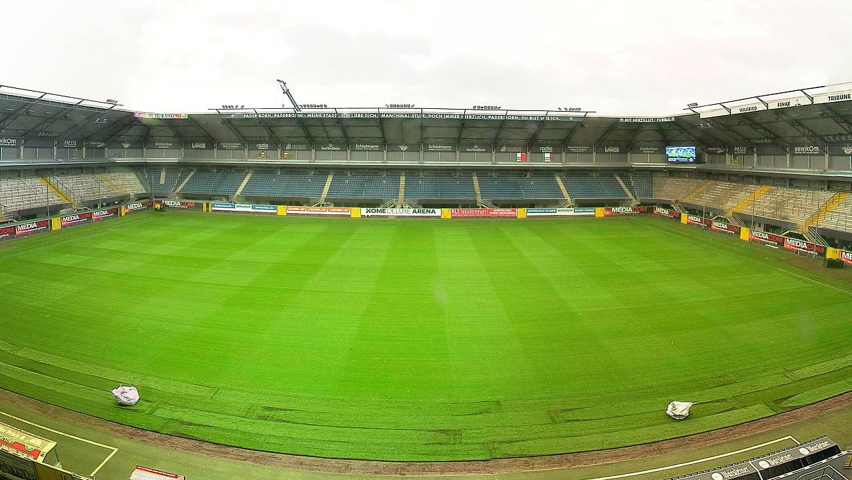 Die Paderborner Home-Deluxe-Arena wurde in den vergangenen Wochen mit Oberrängen bestückt. Zudem erhielt das Stadion eine neue Flutlichtanlage. Ein Regionalliga-Derby soll nun am Sonntag als Testlauf dienen.