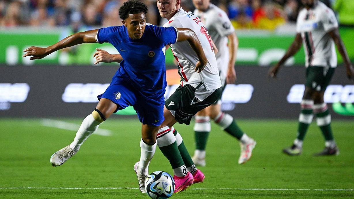 Bashir Humphreys (l.), hier im Testspiel gegen Wrexham, überzeugte in der Vorbereitung und ist nun ein heißer Kader-Kandidat beim FC Chelsea. | © AFP