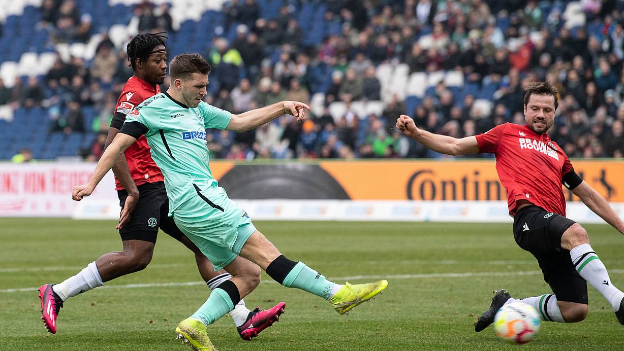 Im Gastspiel bei Hannover 96 schnürte SCP-Stürmer Robert Leipertz, der hier aufs Tor schießt, am 11. Februar einen Doppelpack. Seitdem wartet er auf einen Pflichtspieltreffer. | © picture alliance/dpa