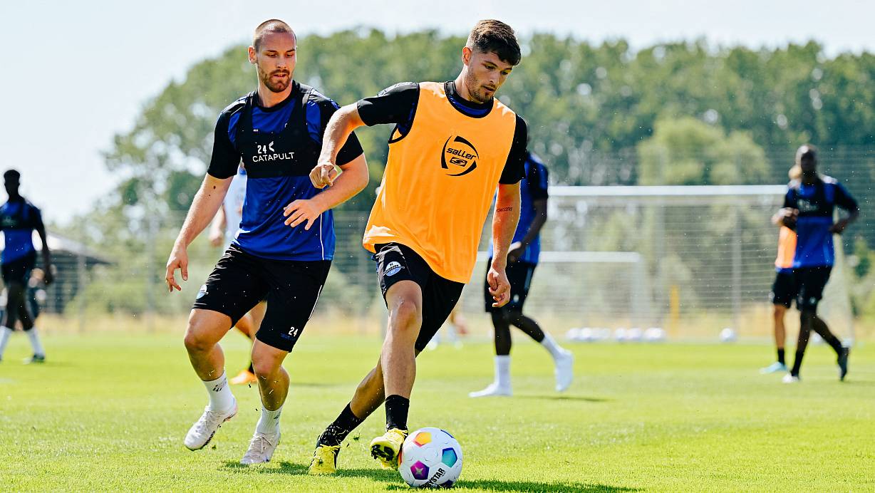 Marcel Hoffmeier (r.) und Jannis Heuer, hier im Wintertrainingslager in Spanien, verbuchten in der vergangenen Zweitliga-Saison zusammen knapp 4.800 Einsatzminuten. Das war für den SC Paderborn bares Geld wert. | © Besim Mazhiqi