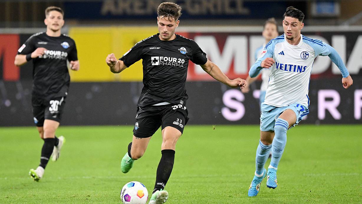 SCP-Akteur Marcel Hoffmeier legt gegen den Schalker Yusuf Kabadayi (r.) den Vorwärtsgang ein. Im Hintergrund ist Florent Muslija zu sehen, mit dem Hoffmeier auf der linken Seite prächtig harmonierte. | © Imago Images