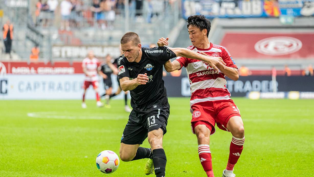 Robert Leipertz (hier im Duell mit dem Düsseldorfer Takashi Uchino) ist fit, braucht aber noch ein wenig Geduld, um zu alter Stärke zurückzufinden. | © picture alliance / BEAUTIFUL SPORTS/Meurer