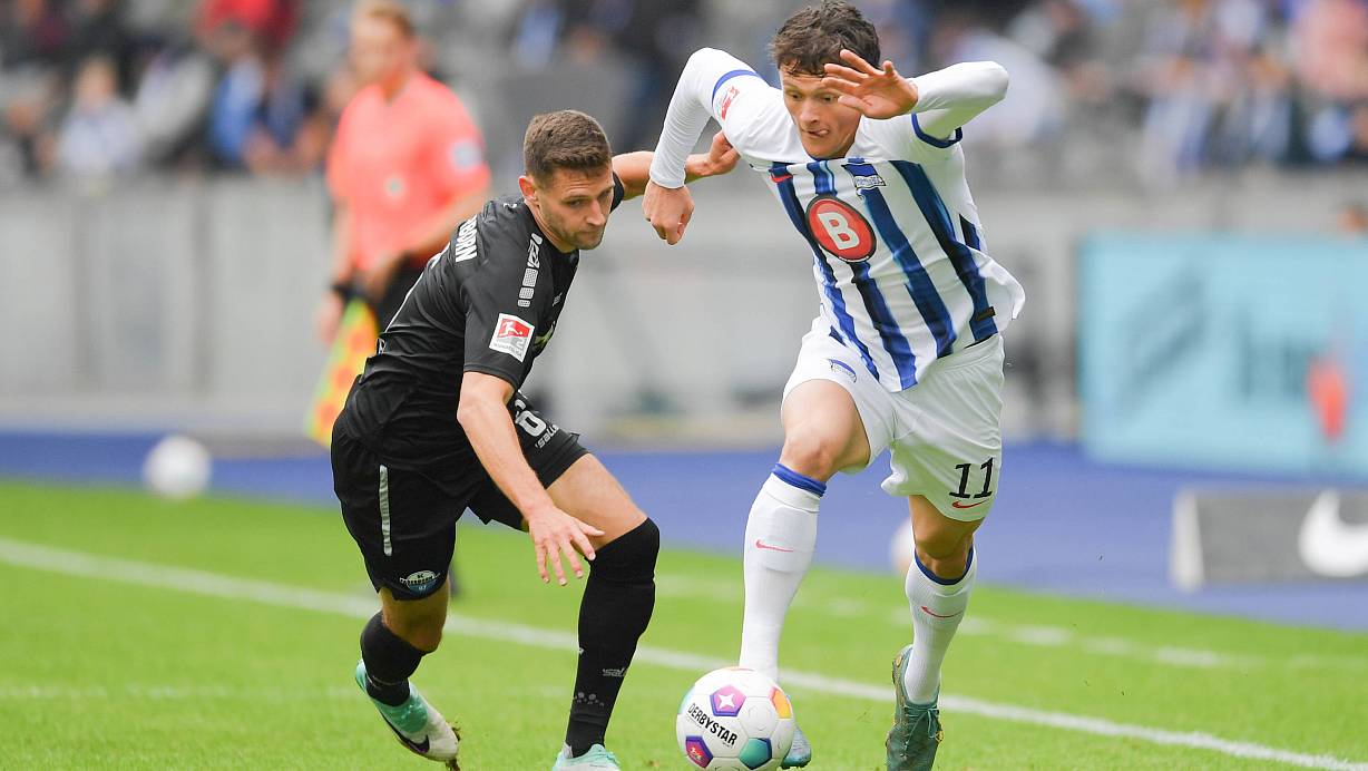 Während Hertha-Flügelflitzer Fabian Reese (r.) aufdrehte, erwischte SCP-Verteidiger Marco Schuster einen gebrauchten Tag. | © Imago Images