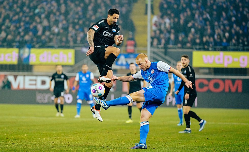 Grimaldi hätte dann in Minute 43 nach starker Vorarbeit von Ilyas Ansah fast zum 2:0 eingeköpft, doch Kolke reagierte glänzend. In der Defensive musste Paderborn gegen die pfeilschnellen Rostocker zwar stets auf der Hut sein. Doch in Sachen spielerischer Klasse waren die Kwasniok-Schützlinge haushoch überlegen.