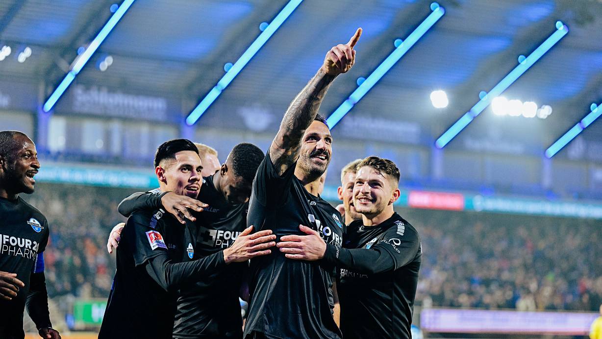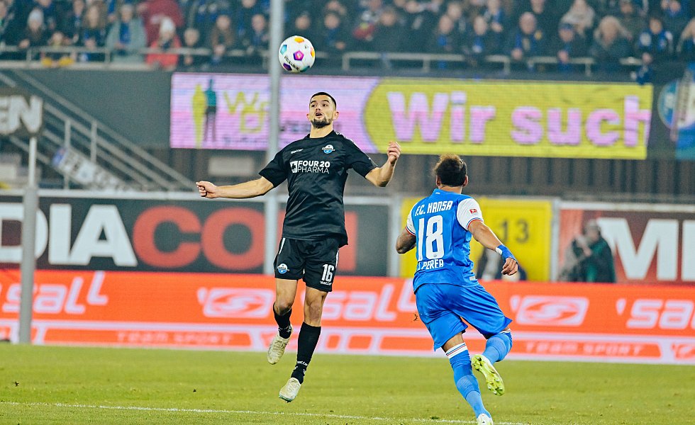 Beide Fanlager intonierten „Scheiß-DFL“-Gesänge. Von vorweihnachtlicher Stimmung war nichts zu spüren. Doch nach neun Minuten rollte wieder der Ball. Und die Hausherren übernahmen das Kommando. Das erste Ausrufezeichen setzte Klefisch, der einen Volleyschuss aus 16 Metern an die Latte donnerte (26.). Dann scheiterte Raphael Obermair an Hansa-Keeper Markus Kolke, der zur Ecke klärte (30.). Eben jene Ecke wurde zunächst abgewehrt, doch der Ball landete vor den Füßen von Adriano Grimaldi, der mit seinem vierten Saisontreffer das 1:0 (31.) erzielte. Und der SCP blieb am Drücker. Florent Muslija setzte das Leder aus spitzem Winkel knapp übers Tor (37.).