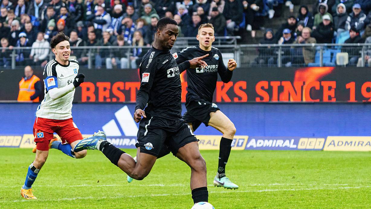 Ilyas Ansah, der in dieser Szene im Gastspiel beim HSV sein erstes Zweitligator erzielt, war eine der größten positiven Überraschungen der Hinrunde. Und auch Teamkollege Filip Bilbija (hinten r.) wusste durchaus zu gefallen. | © picture alliance