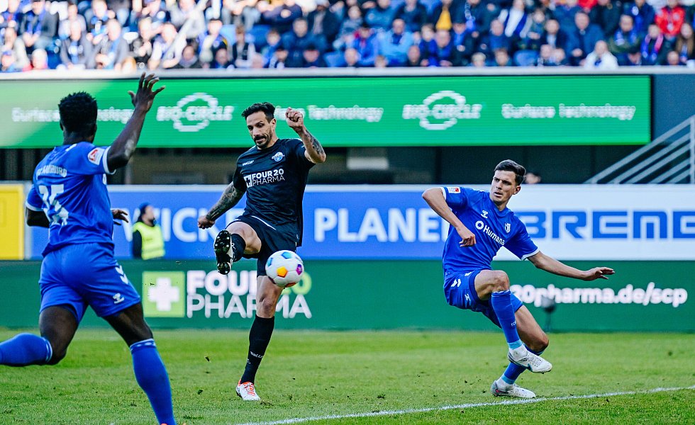 Die Magdeburger bekamen die Partie nun aber mit ihrem gewohnten Ballbesitzfußball in den Griff, ohne dabei jedoch zu zwingenden Chancen zu kommen. Und so hatte das Duell zweier spielstarker Teams nur wenig Höhepunkte zu bieten. Es dauerte bis zur 38. Minute, ehe der SCP endlich wieder eine gute Torgelegenheit verbuchte. Bilbija setzte sich auf der linken Seite durch. Robert Leipertz legte ab. Doch David Kinsombi bekam nicht genügend Druck hinter den Ball.
