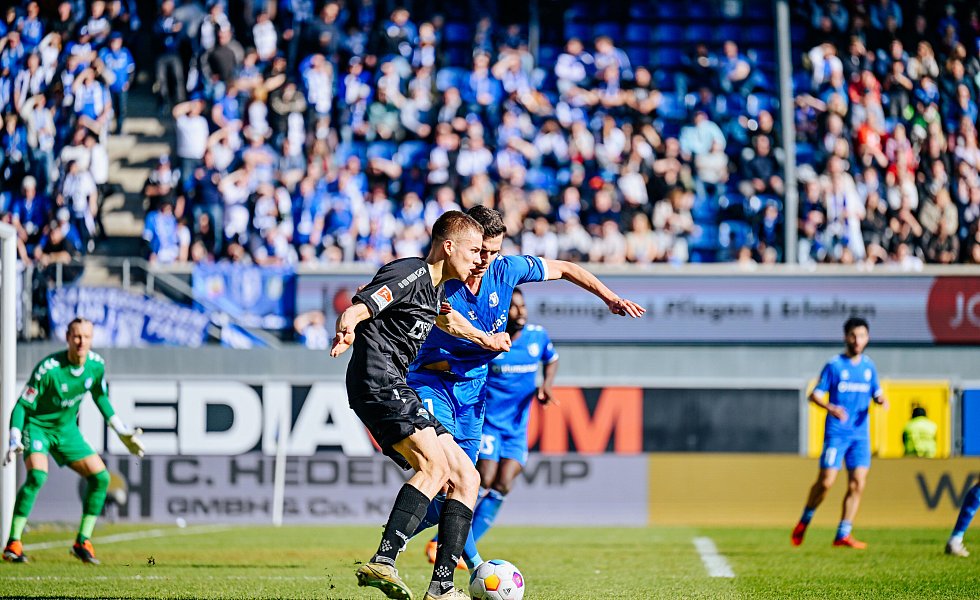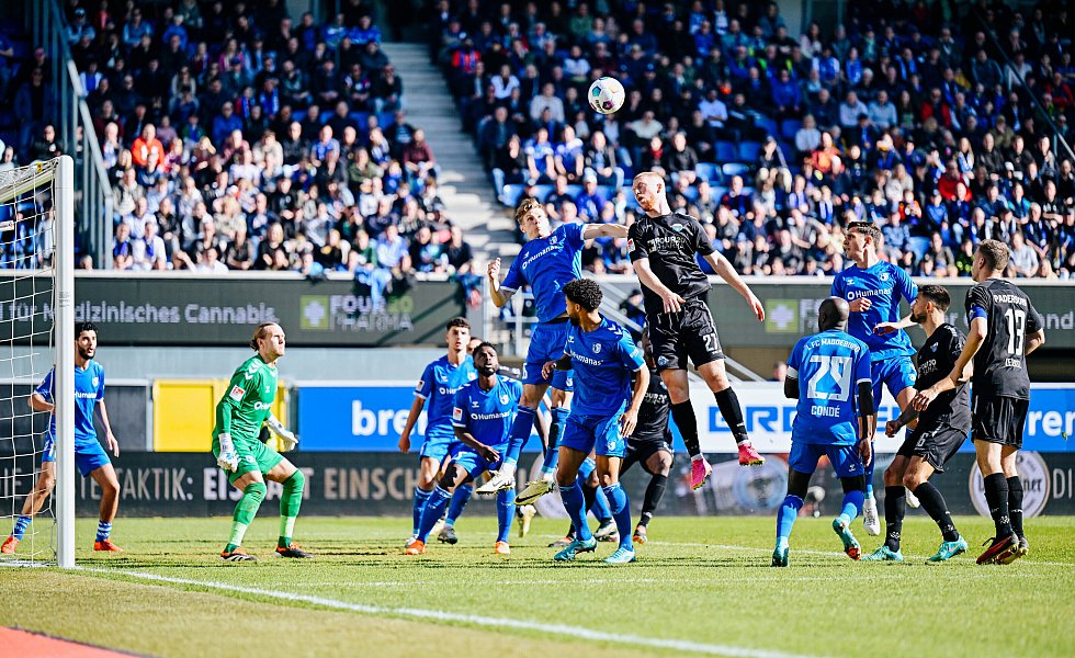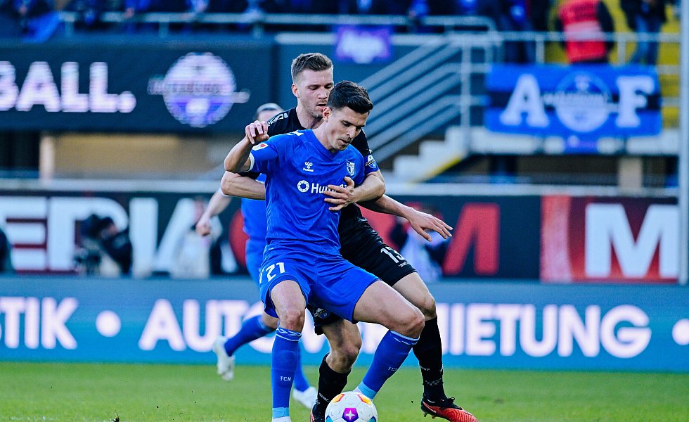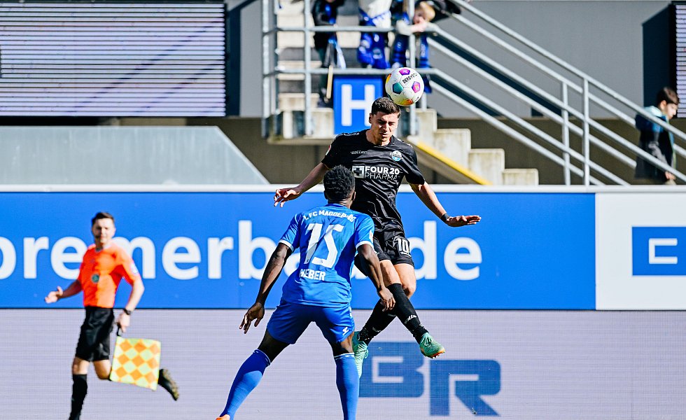 Sebastian Klaas kam anschließend für Kinsombi ins Spiel (72.). Und die Gäste mussten ab Minute 79 in Unterzahl spielen. FCM-Stürmer Jan-Luca Schuler sah für ein überhartes und völlig unnötiges Einsteigen gegen Laurin Curda die Rote Karte. Referee Nicolas Winter schaute sich die Szene noch einmal auf dem TV-Monitor an, blieb aber bei seiner harten Entscheidung.