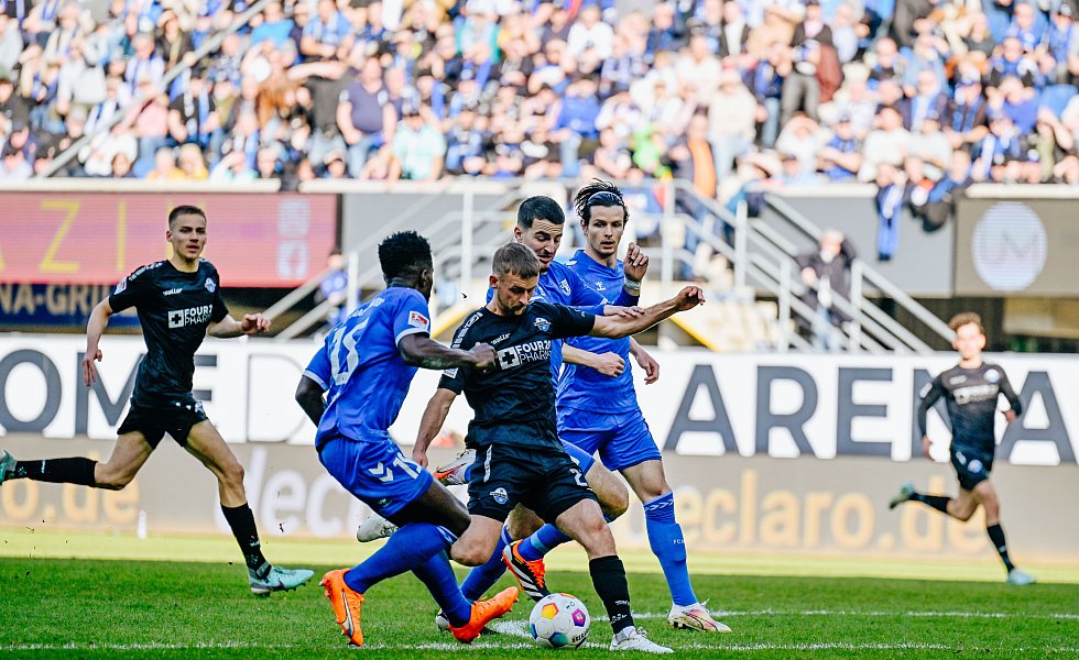 Kräftig durchatmen mussten die Paderborner Fans aber vor allem in Minute 64, in der sich Kai Klefisch einen haarsträubenden Ballverlust leistete, den Magdeburg jedoch nicht nutzen konnte. Dann gab es den ersten Wechsel auf Seiten der Hausherren: Adriano Grimaldi ersetzte Ilyas Ansah (66.). Eben jener Grimaldi hatte keine 120 Sekunden später die bis dato beste Chance des Spiels. Der Sturmroutinier kam nach einem feinen Angriff über Musliu und Kinsombi zum Abschluss, scheiterte aber mit einer Direktabnahme am glänzend reagierenden Reimann (68.).