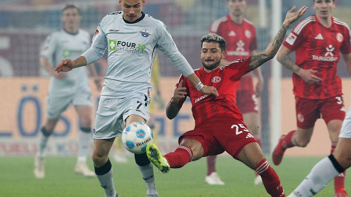 Während der SCP in der ersten Halbzeit Ruhe ausstrahlte und sich sicher im Ballbesitz zeigte, punktete Düsseldorf vor allem durch defensive Stabilität. Die besseren Chancen verzeichneten die Paderborner, obwohl sie nicht zwingend waren: Weder Luis Engelns Distanzschuss in der 22. Minute noch die Versuche von Adriano Grimaldi (39.) und Koen Kostons stellten Torhüter Florian Kastenmeier vor ernsthafte Probleme.