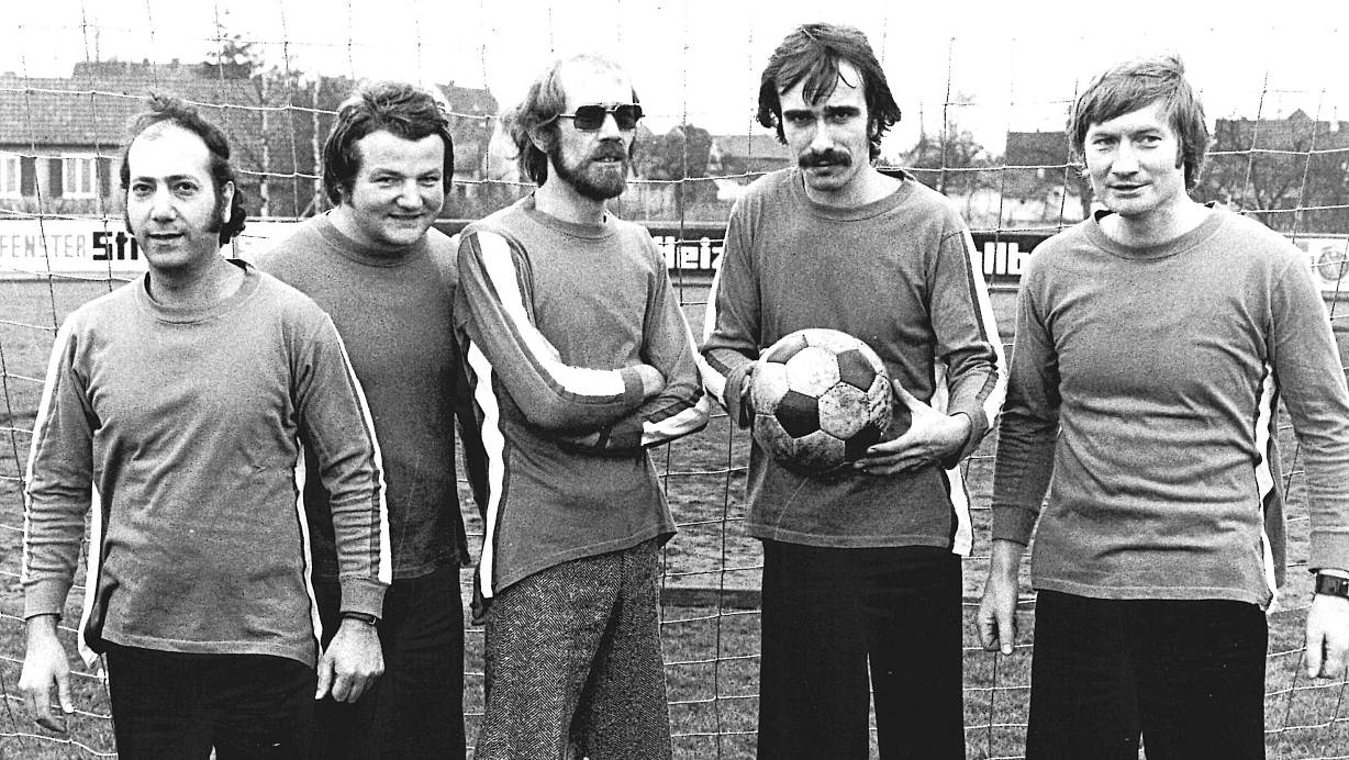 1976 nahmen die Young Street Singers in der Besetzung (v. l.) Alfi Messiha, Helmut Netzer, Wilfried Pollmann, Wolfgang Kissner und Bandleader Richard Stephan die Vereinshymne des 1. FC Paderborn auf.