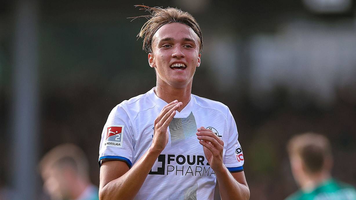 Luis Engelns vom SC Paderborn feiert einen Kantersieg mit der deutschen U19