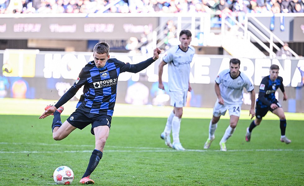 Mitch Kniat reagierte mit einem Dreifachwechsel: Benjamin Boakye, Sarenren Bazee und Isaiha Young kamen für Christopher Lannert, Grodowski und Momuluh (66.). Zudem stellte der Arminen-Coach auf eine Dreier-Abwehrkette um. Und das Derby hatte die nächste Pointe zu bieten. So gab es in der 72. Minute den dritten Elfmeter des Spiels. Diesmal wieder für Arminia.