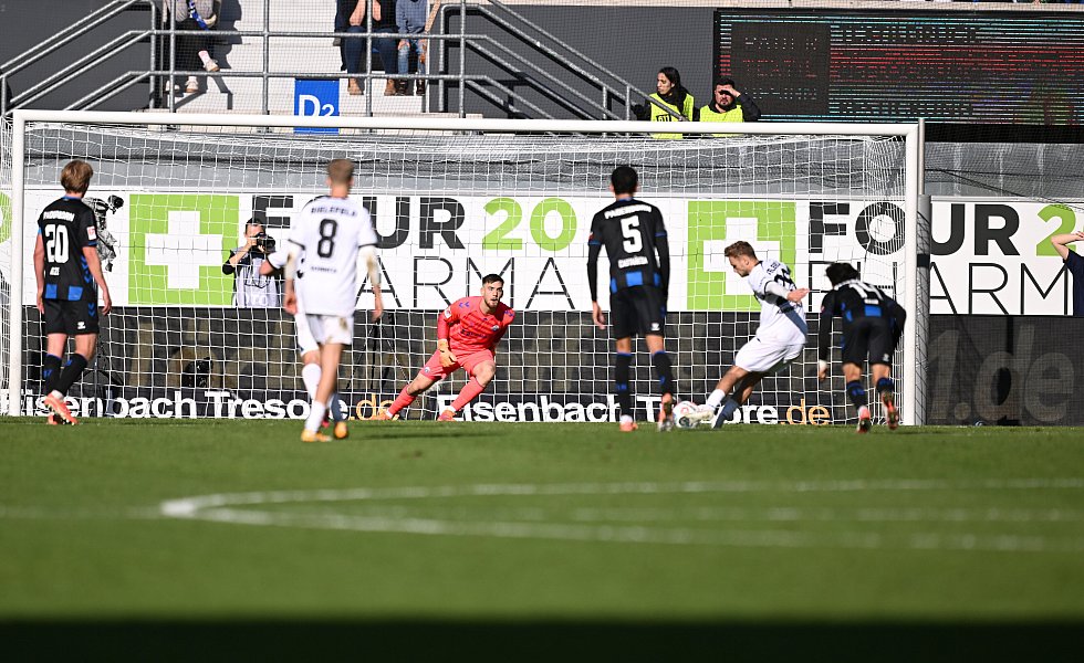 Nach einem Doppelpass zwischen Filip Bilbija und Laurin Curda schlenzte Mika Baur das Leder mit seinem ersten Pflichtspieltreffer für den SCP ins lange Eck (26.). Es war sein erster Pflichtspieltreffer für den SCP ein schmeichelhafter Ausgleich. Doch Bielefeld fand eine perfekte Antwort und schlug zurück.