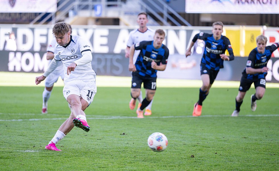 SCP-Kapitän Götze hatte gegen Großer geklammert. Referee Burda zeigte sofort auf den Punkt. Handwerker trat an und ließ Seimen nicht den Hauch einer Chance (74.). Und so stand es nur noch 4:3 für Paderborn. Dann erhielt Bielefeld einen Freistoß aus 17 Metern, weil sich Bätzner ein Foul an Mehlem geleistet hatte. Handwerker zielte jedoch knapp zwei Meter übers Tor (79.).