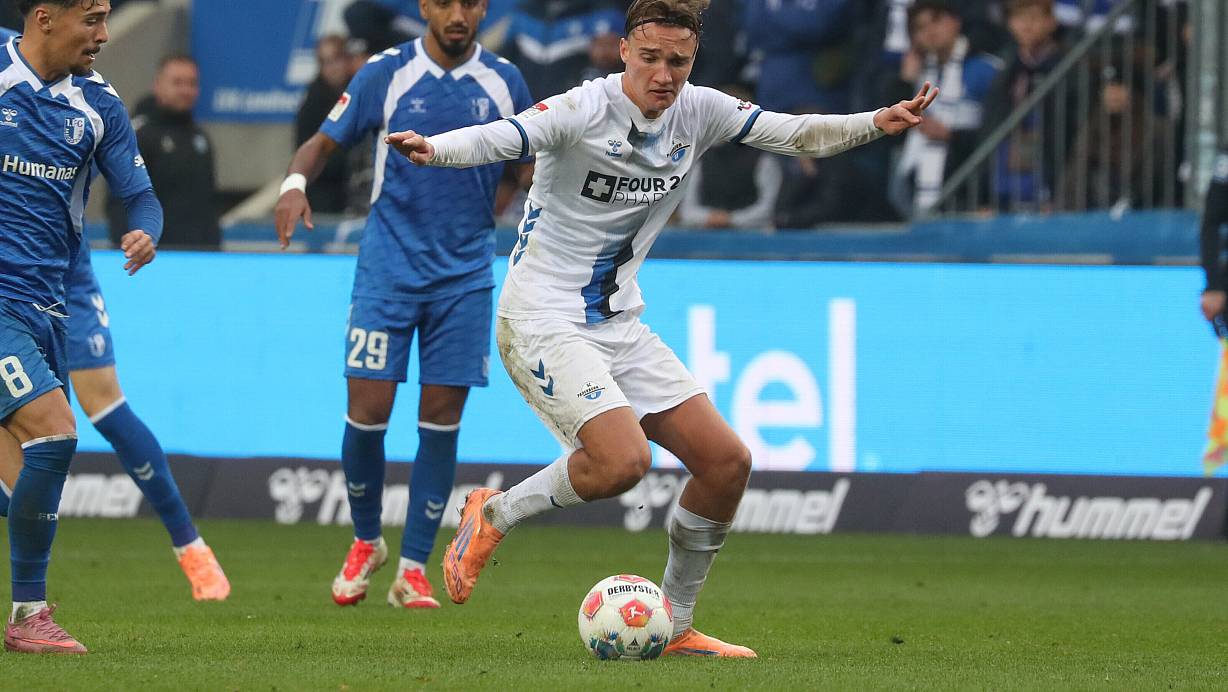 SCP-Akteur Luis Engelns, der hier am Ball ist, klagte nach dem Spiel in Magdeburg über Oberschenkelprobleme und verzichtet nun auf die Reise zur deutschen U19-Nationalmannschaft. | © Picture Alliance